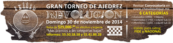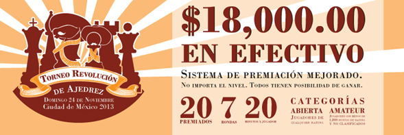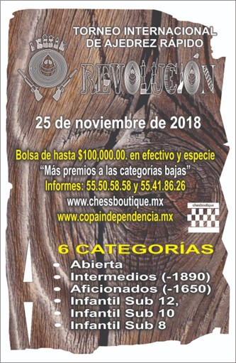 El Torneo Copa Revolución inició sus operaciones en el año 2013, con $18,000.00 pesos en premios. En esa primera edición sólo había dos categorías, Abierta y Amateur y se jugaba a ritmo rápido (20 minutos por jugador), en un solo día.